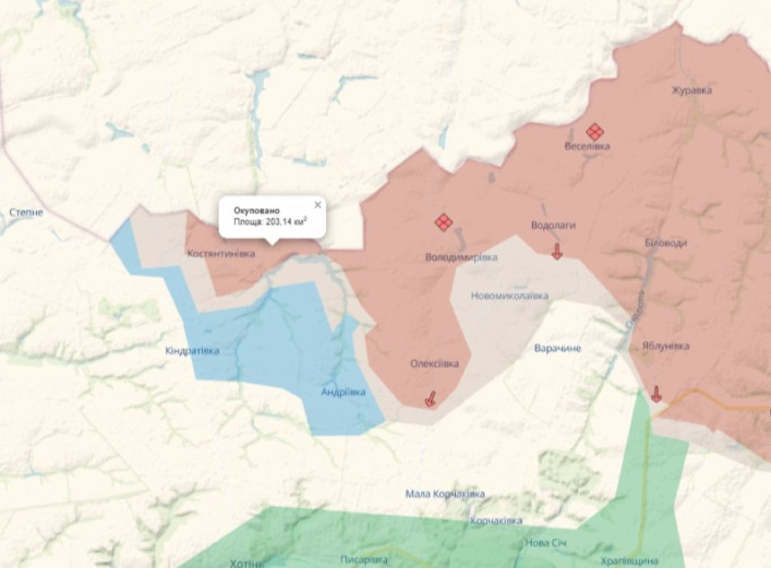 ЗСУ відтиснули окупантів у Хотінській громаді: зменшено площу захоплення Текст:Сили оборони України продовжують тіснити ворога на Сумщині. Як повідомляє аналітичний проєкт DeepState, українські військові звільнили близько 7 кв. км території
