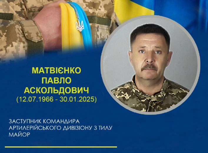 1 лютого Білопільська громада провела в останній земний шлях померлого земляка - заступника командира артилерійського дивізіону з тилу, майора Павла МАТВІЄНКА. Чоловік помер 30 січня 2025 року. Матвієнко Павло Аскольдович народився 12 липня