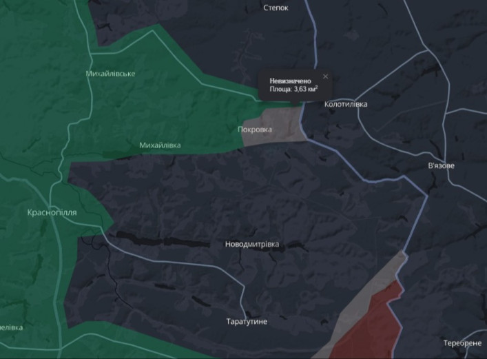 Як повідомили аналітики проєкту DeepState, на Сумщині з’явилася ще одна «сіра зона». Сьогодні територію площею понад 3 квадратних кілометри на північний схід від Краснопілля позначили сірим кольором, що свідчить про відсутність