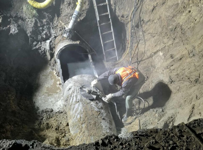На сегодня аварийный участок расчищен, сточные воды бесперебойно транспортируются по лотку канализационной трубы. Оснований для ограничения водоснабжения ни одного района или улицы нет. 23 июня начаты аварийно-ремонтные работы на самотечном