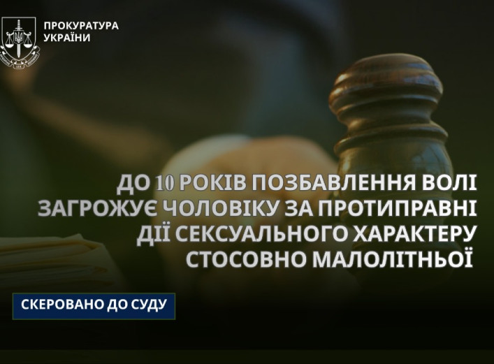 Ювенальні прокурори Окружної прокуратури міста Суми направили до суду обвинувальний акт стосовно 61-річного чоловіка. Його підозрюють у неодноразовому вчиненні протиправних дій сексуального характеру щодо малолітньої дитини, яка перебувала на