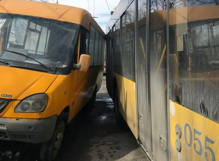 ДТП за участю комунального та приватного громадського транспорту. Як повідомляють на сторінці КП "Електроавтотранс", "Рута" зіштовхнулася з тролейбусом. На місці аварії працюють патрульні.