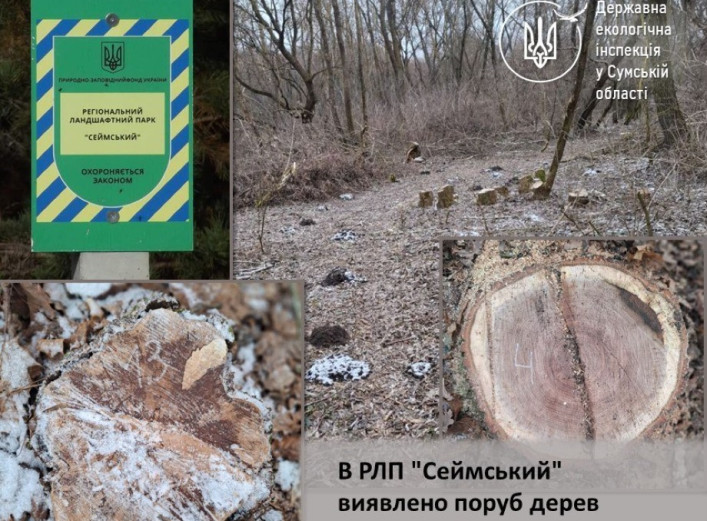 27-річний чоловік протягом двох днів незаконно спиляв декілька дерев на території природно-заповідного фонду «Сеймівський». Його викрили працівники поліції, які викликали слідчо-оперативну групу для документування злочину проти