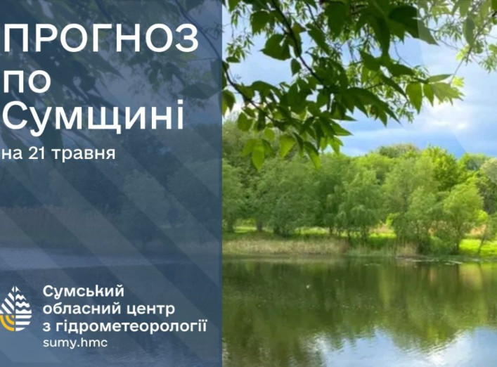 хмарність. Вночі без істотних опадів. Вдень місцями невеликий дощ, можлива гроза. Вітер західний, 7-12 м/с. Температура повітря по області вночі +4°..+9°, вдень +17°..+22°. По місту Суми вночі