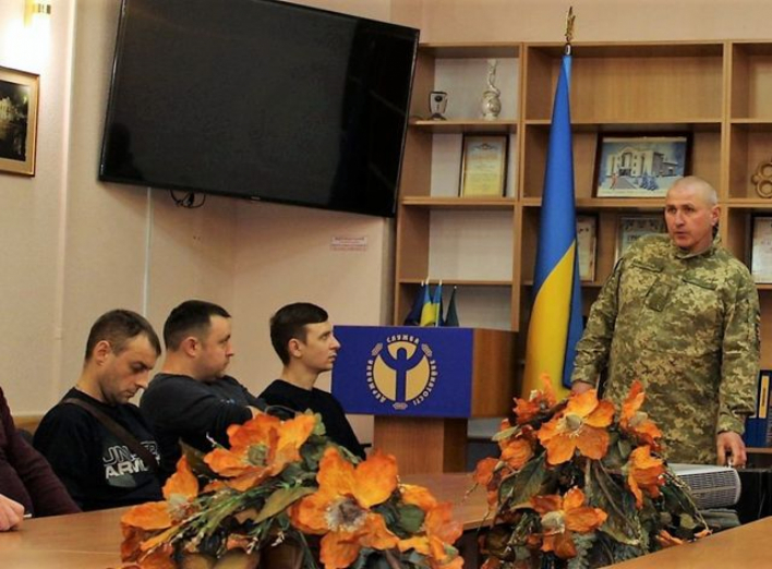 У Сумах міський центр зайнятості провів черговий семінар з інформування містян про військову службу за контрактом. Спікером зустрічі виступив заступник військового комісара У Сумах міський центр зайнятості провів черговий семінар з інформування