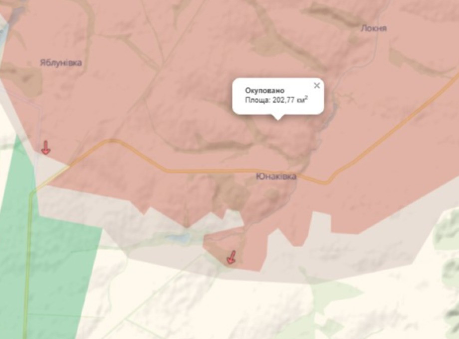 Згідно з даними аналітичного проєкту DeepState, на Сумщині скоротилася територія, що перебуває під російською окупацією. Загальна площа «червоної зони» тепер становить 206 кв. км. Наразі під окупацією залишаються: 202 кв. км