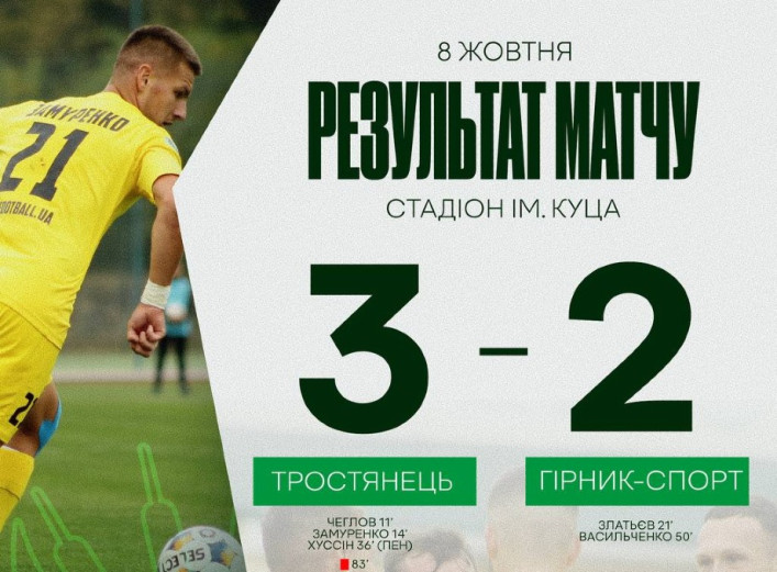 здобув домашню перемогу над командою «Гірник-Спорт» з рахунком 3:2. Цей результат дозволив команді зберігти перше місце у групі Б. «Тростянець» прагнув реваншу за недавню поразку в Кубку