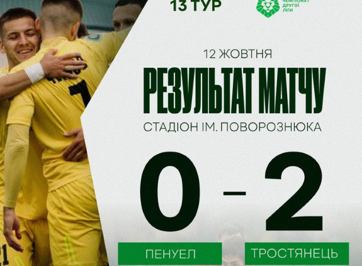 12 жовтня у 13-му турі Другої ліги чемпіонату України ФК «Тростянець», який посідає перше місце у групі Б, грав у гостях проти аутсайдера турніру — команди «Пенуел» (Кривий Ріг). Виїзд виявився дуже складним: через
