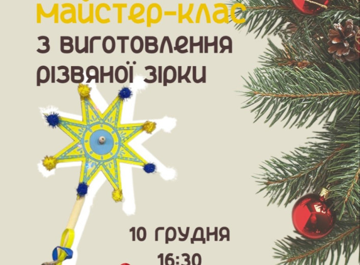 Агенція промоції "Суми" запрошує юних сум’ян (від 5 років) на особливий різдвяний майстер-клас. 10 грудня о 16:30 у Сумській міській галереї (вул. Соборна, 27) будуть створювати традиційну різдвяну зірку – символ світла, надії та
