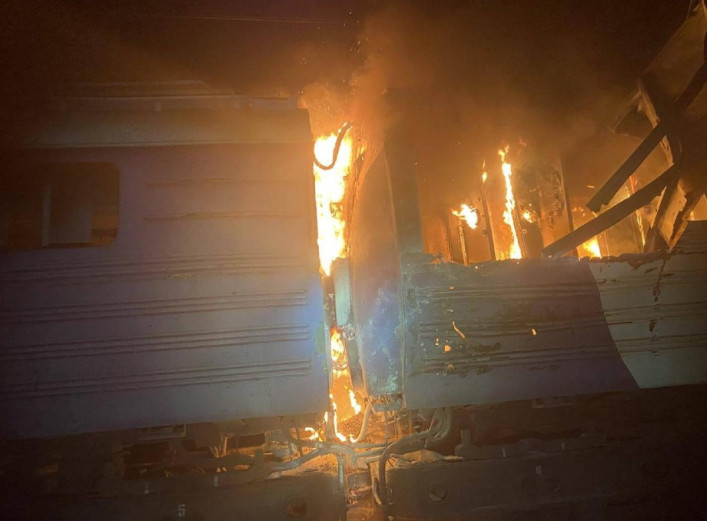 Уночі російські безпілотники атакували об’єкти залізничної інфраструктури в Україні. Один із дронів влучив у приміський поїзд на Харківщині. Про це повідомляє Олександр Кулеба. За його словами, російський безпілотник поцілив у приміський